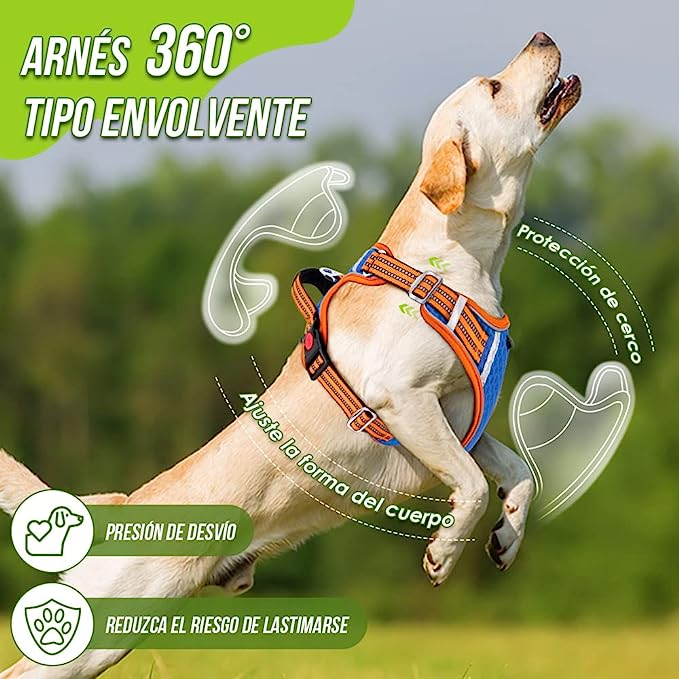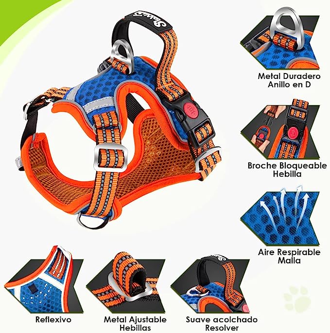 Arnés para Perro Chico Mediano Grande, Pechera Transpirable Resistente para Perro con Mango de Control, Arnes Ajustable Reflectante para Caminar Viajar Entrenar Perros Accesorios,