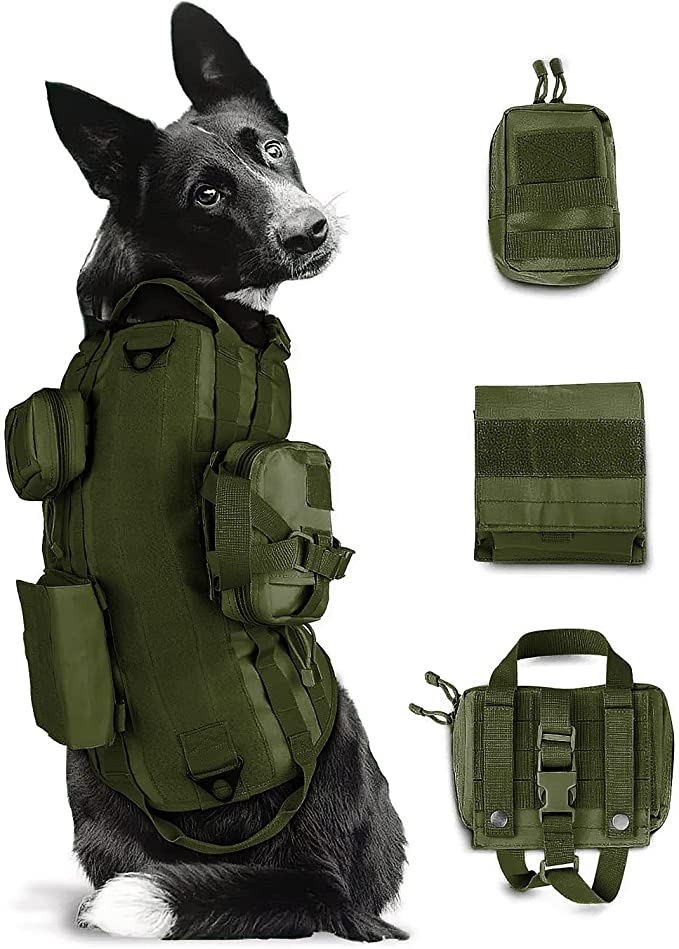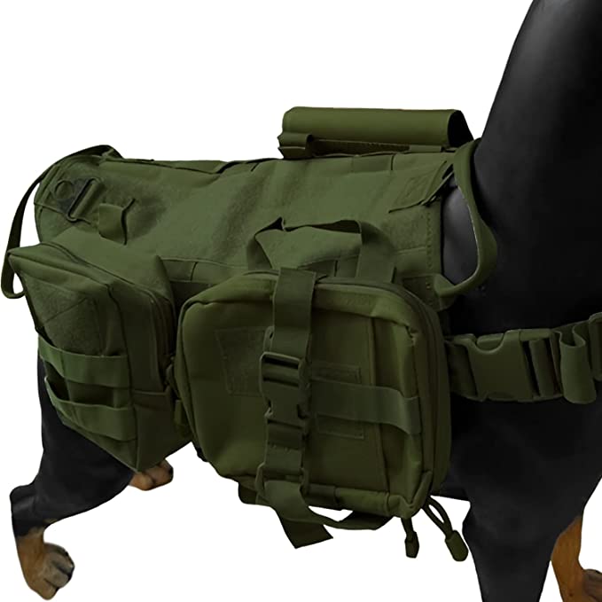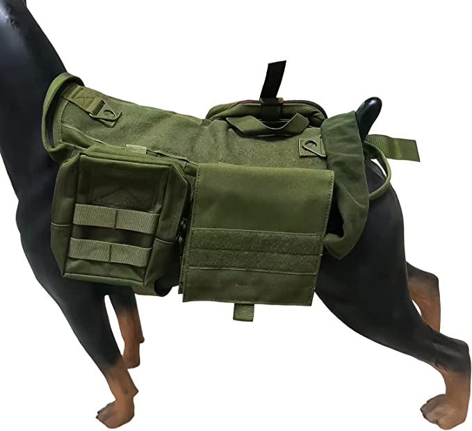 - COMODIDAD EN SITUACIONES DE EMERGENCIA O EN ENTORNOS HOSTILES. El chaleco táctico para perro cuenta con bolsillos de almacenamiento de gran capacidad para llevar consigo suministros médicos quirúrgicos, medicamentos, comida, golosinas y otros elementos esenciales en caso de emergencia.