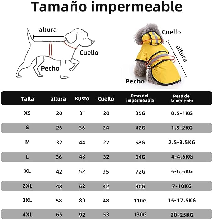 Impermeable: elaborado con material 100% poliéster con recubrimiento impermeable para mantener a su mascota cómoda y seca incluso en las peores condiciones climáticas