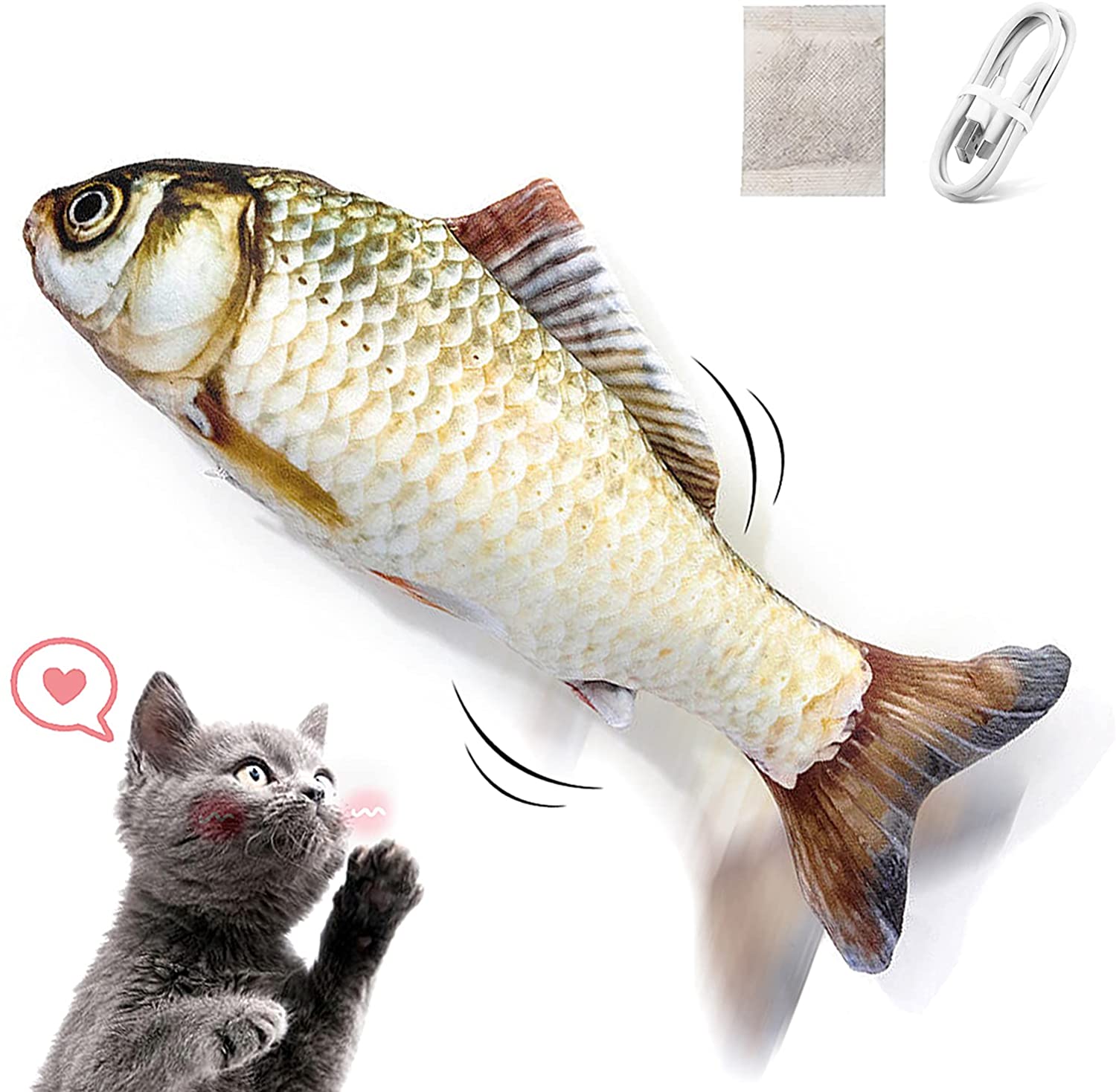 Juguete pez para Gato con Catnip /Pescado para Gatos Que se Mueve Juego Pez Gato Interactivo