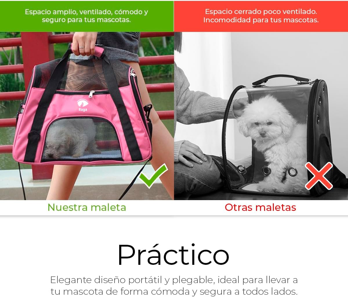 Maleta Transportadora de Mascotas, Perros y Gatos, Bolsa Portátil para Máximo 10Kg de Peso
