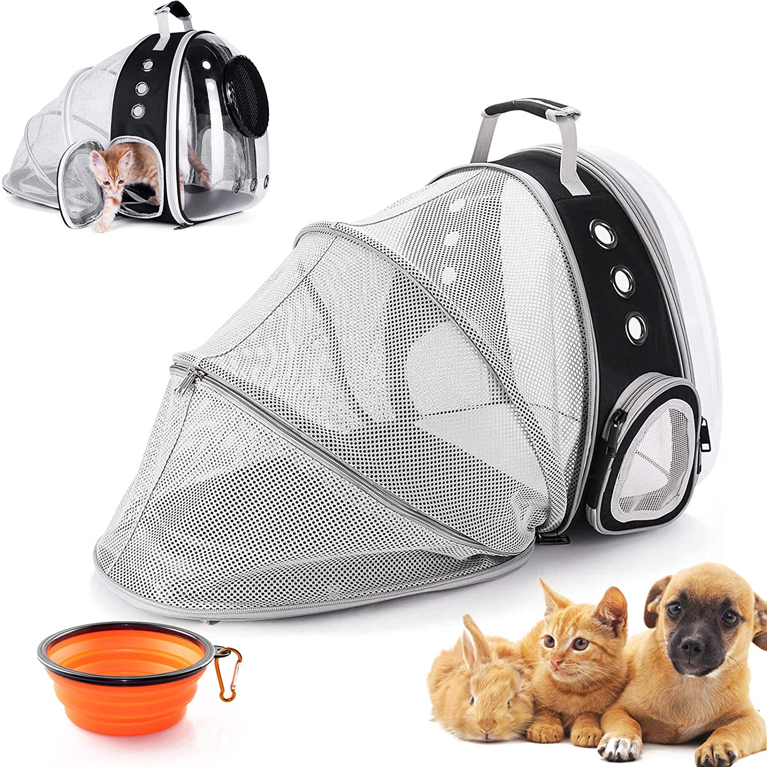 - Diseño de ventana transparente y cama de tienda extensible:】 a los gatos les encanta vigilar de cerca su entorno. La ventana transparente hace realidad que los gatos pueden ver todo en la mochila para gatos. Ampliar fácilmente a la cama de la tienda grande proporciona más espacio para jugar y descansar.