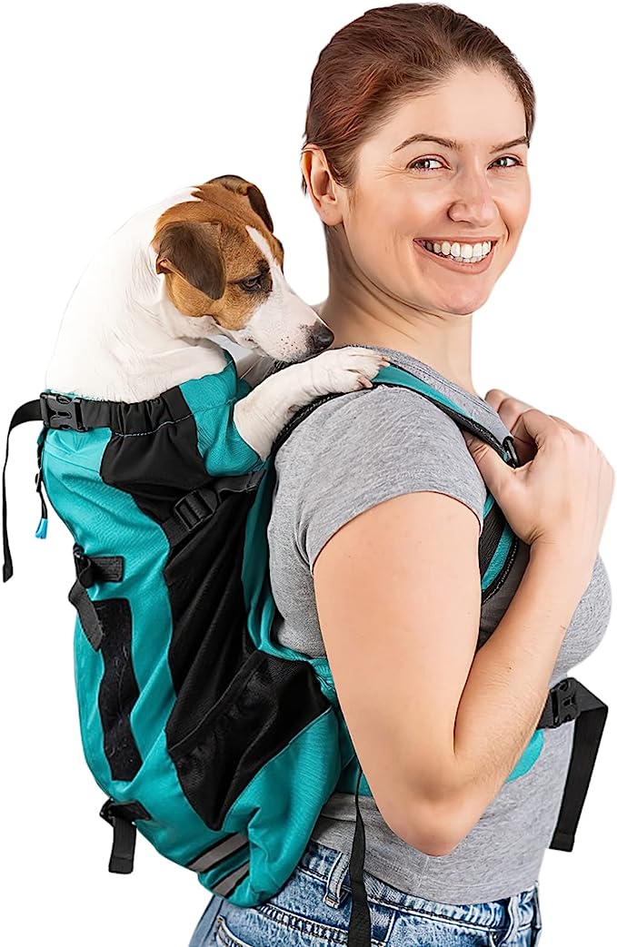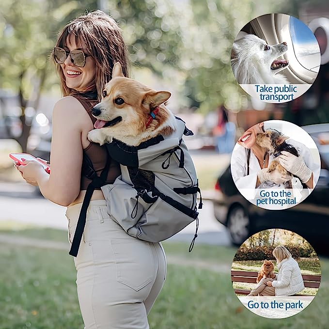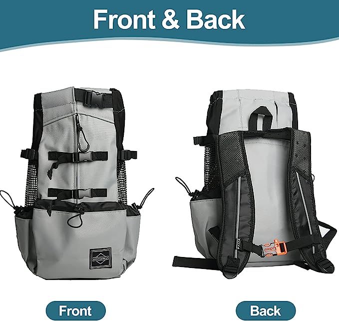 Material de alta calidad: la mochila para mascotas está hecha de poliéster, que es ligero y duradero. El material de malla transpirable en ambos lados de la mochila para perros tiene una buena permeabilidad al aire, lo que asegura la circulación del aire dentro de la mochila y hace que la mascota se sienta más cómoda. El diseño único de la mochila para mascotas le permite a su perro estirar sus dos patas delanteras y colocarlo en su hombro o espalda.