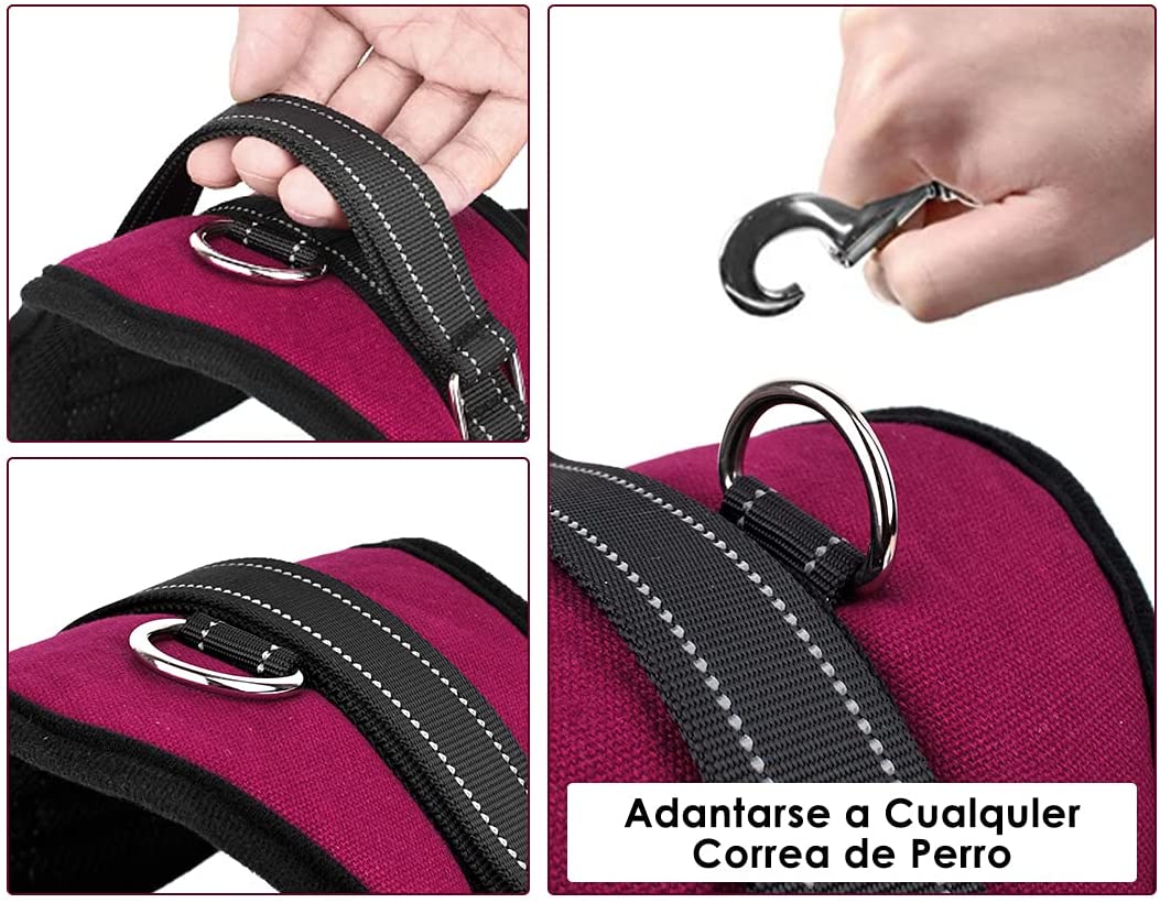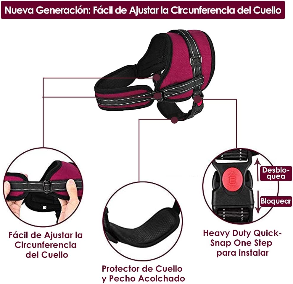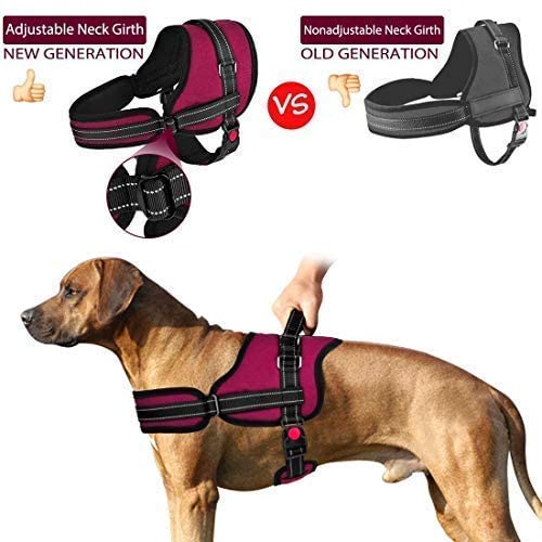 - Nueva Generación y Diseño Práctico — Tanto la correa para el cuello como la correa para el vientre son ajustables en el arnés de chaleco de nueva generación. Hay dos hebillas ajustables que son fáciles de sujetar y las correas se pueden ajustar al tamaño de los perros lo suficiente. Tiene un botón de bloqueo rojo en la hebilla, asegurándose de que la hebilla permanezca abrochada. El buen mango en la parte superior para mantener el perro en su lugar. arneses perros grandes.