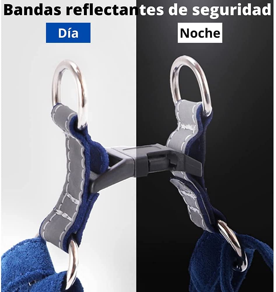 - ✔ SEGURIDAD DURANTE LA NOCHE: El diseño de las tiras reflectantes garantizan un paseo seguro, evitan efectivamente los accidentes de tráfico causados por problemas de iluminación durante la noche, y puede ayudar a las personas a encontrar perros perdidos mas fácilmente.