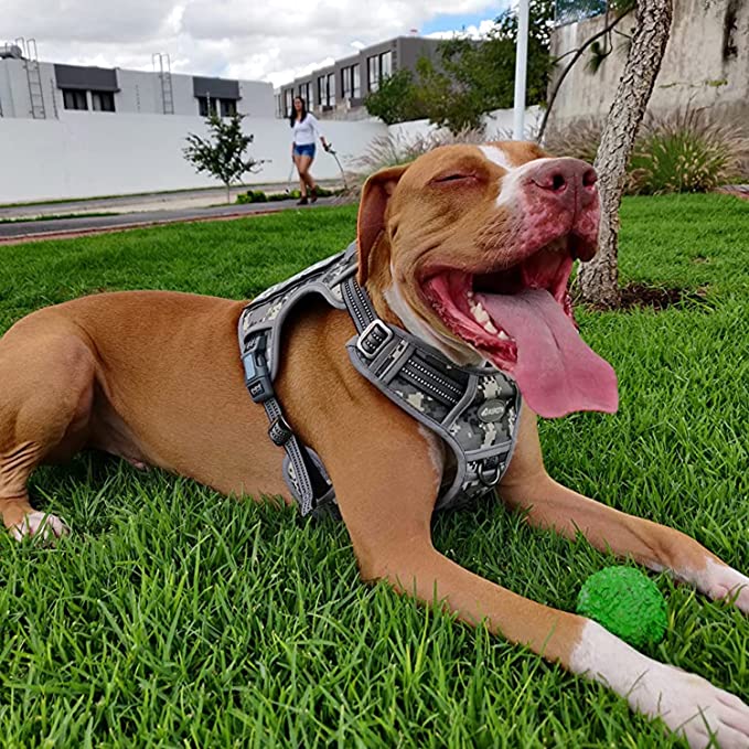 • Fácil de controlar: Nuestro arnés de seguridad cuenta con 2 puntos de fijación de correa de metal para pasear con tu perro de forma segura. Un clip frontal para control sin tirones o entrenamiento de perro, y el otro clip trasero para caminar o correr casualmente.