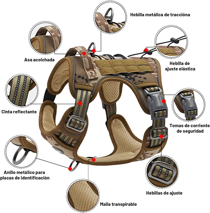 Pechera Arnés táctico para Perros, sin tirones arnés Ajustable para Mascotas con Lineas Reflecantes, para Perros