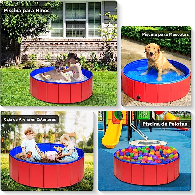 • Multifuncional: Las albercas para perros se pueden utilizar en interiores y exteriores, no solo como albercas para gatos y perros, bañeras, sino también como albercas de verano para niños, albercas de pelotas de juguetes para bebés, caja de arena, caja de almacenamiento y cama para cachorros. Tu cachorro y niños pasarán un rato genial y feliz en verano.