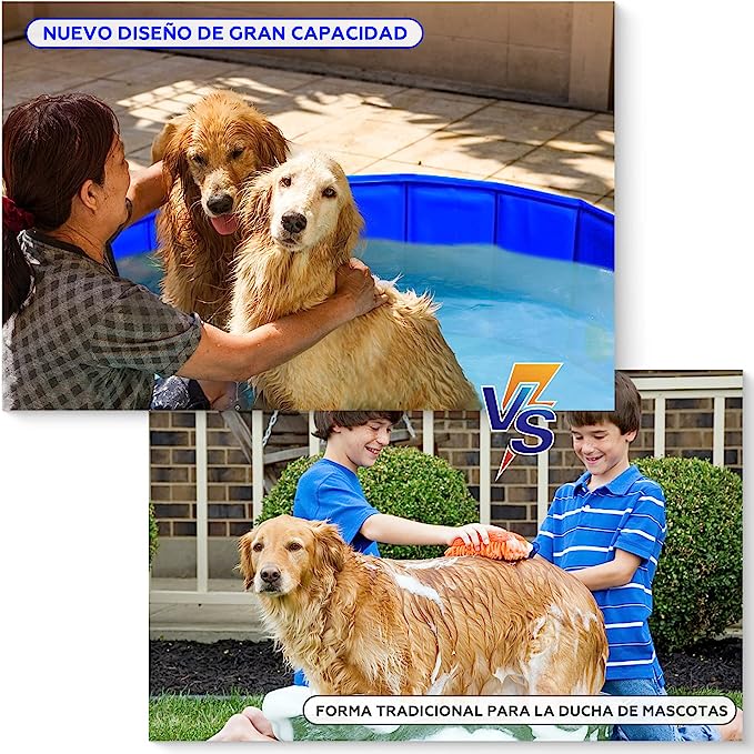 Piscina plegable para perros y mascotas, Bañera portátil de PVC baño para mascotas grandes