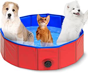 • Portátil y plegable: La piscina para mascotas adopta un práctico diseño plegable, por lo que es fácil de empacar y almacenar. Solo necesitas unos segundos para abrir y plegar fácilmente.Se puede utilizar como una piscina para perros, estanque de agua al aire libre, bañera, piscina para niños, etc.