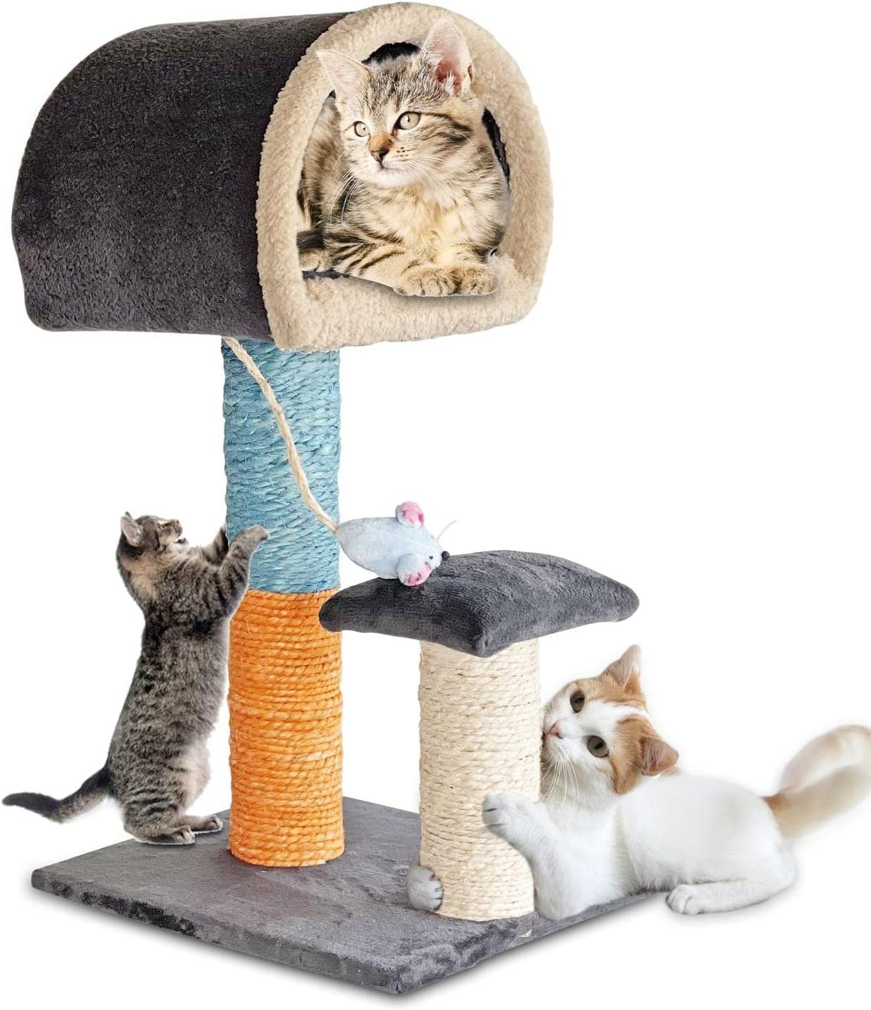 - PRIVADO Y ESTABLE | Su guarida privada crea un divertido escondite y su base acolchada promueve la relajación y grato descanso de tu gato. Su estructura es fuerte y estable. Aloja sin ningún problema gatos hasta 10 kilos de peso! 75 Cm de Alto y base de 40 cm.