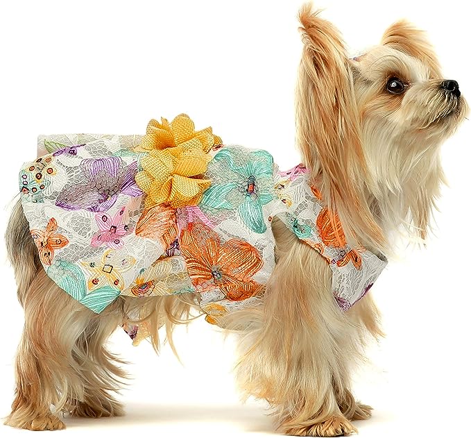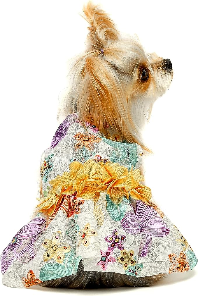 Estampados de flores vibrantes. Ideal para vacaciones de verano, fines de semana y fiestas. Elegante vestido para perro en color llamativo que ayuda a tu perro a destacar entre la multitud.