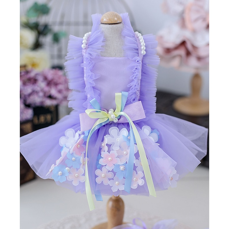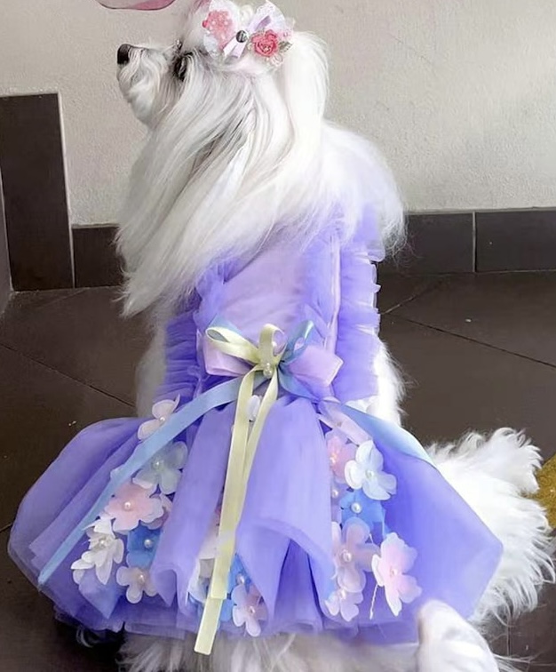 Vestido de perro de hada de las flores lavanda, vestido de novia de perro gato, vestido de tutú de cumpleaños de perro, disfraz de princesa,ropa para mascotas vestido de lujo