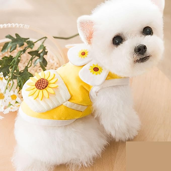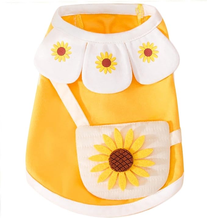Diseño dulce: el vestido para perros está diseñado con un patrón de girasol, el diseño es novedoso y llamativo, el girasol simboliza la luz del sol, adecuado para el verano, es dulce y lindo de usar.