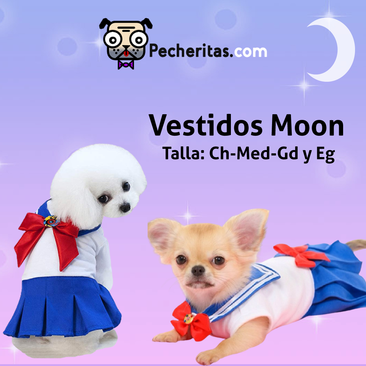 Vestido Moon para mascota perro y gato, color blanco, azul, verde, rojo, rosa y naranja. Ropa para mascotas, el vestido más hermoso de tu personaje preferido Sailor moon haz que tu mascota luzca como toda una guerrera de la luna.